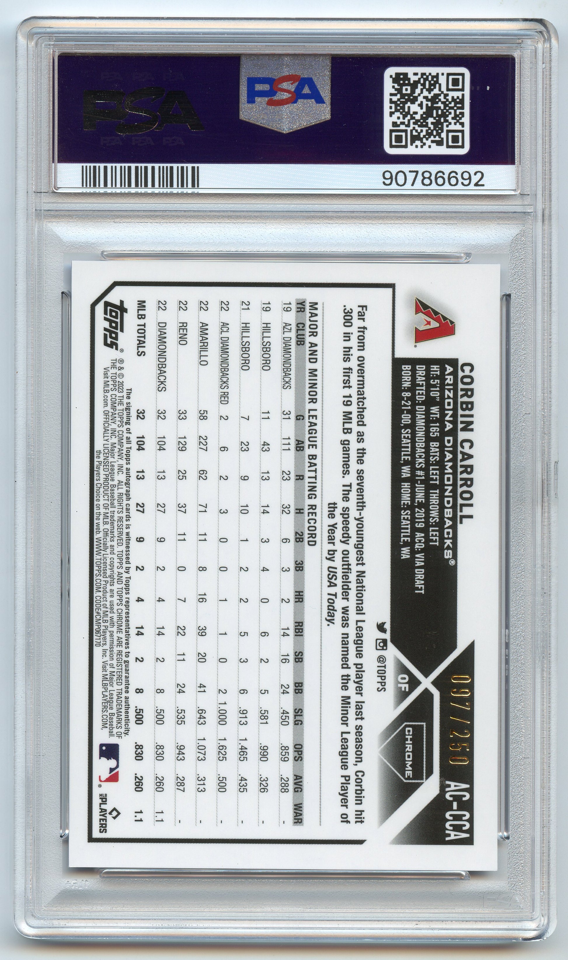 2023 Topps Chrome Update Corbin Carroll Purple Auto /250 PSA 10