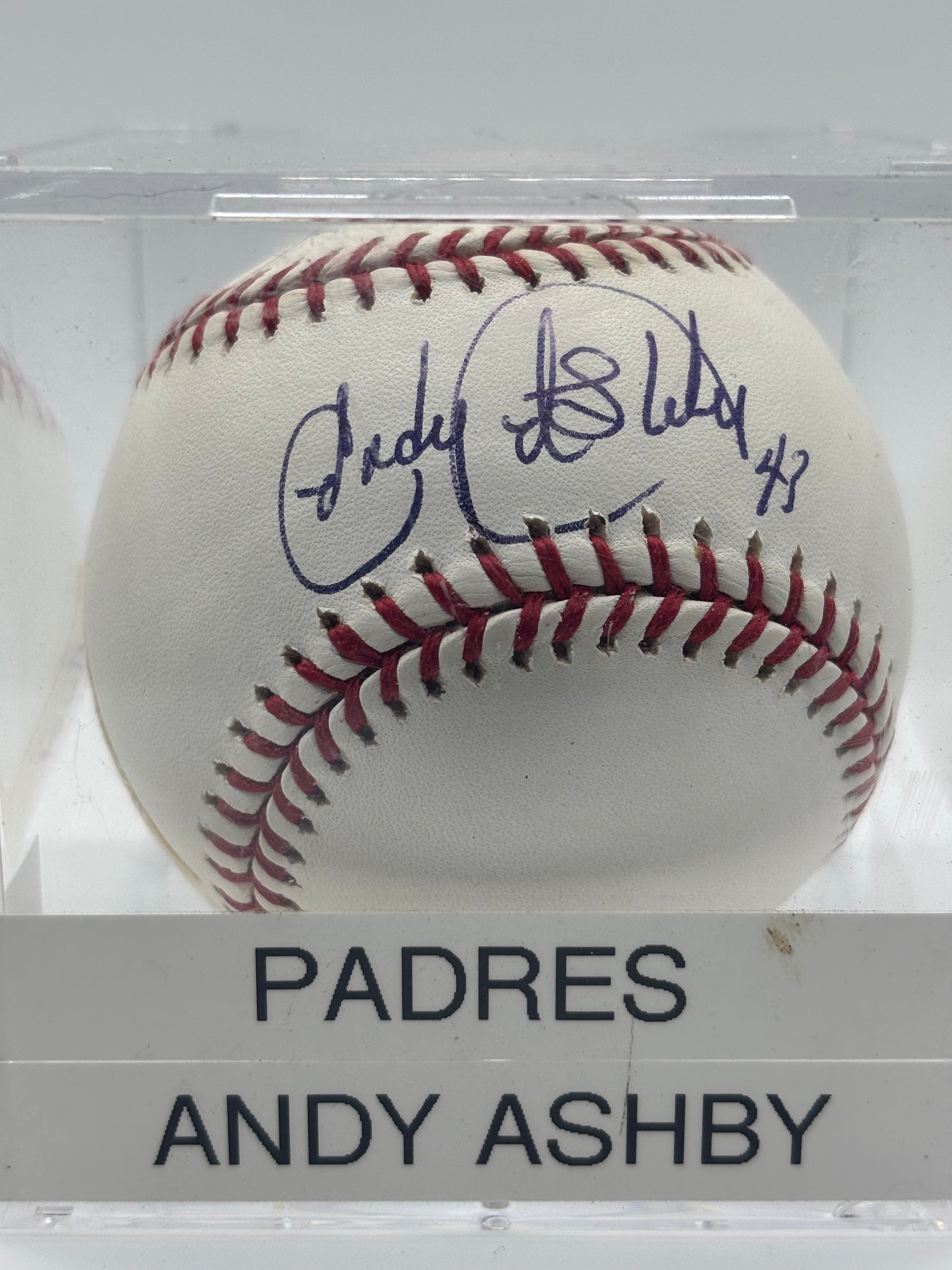 Andy Ashby Autograph Baseball celebrates the career of a distinguished MLB pitcher known for his consistency and competitive spirit. Ashby, a two-time All-Star, excelled primarily with the San Diego Padres, delivering reliable performances on the mound throughout the 1990s and early 2000s. This signed baseball is a prized collectible for fans appreciating his contributions to the game and his role in memorable postseason appearances. A must-have for serious collectors seeking a piece of baseball history linked to a respected left-handed starter.