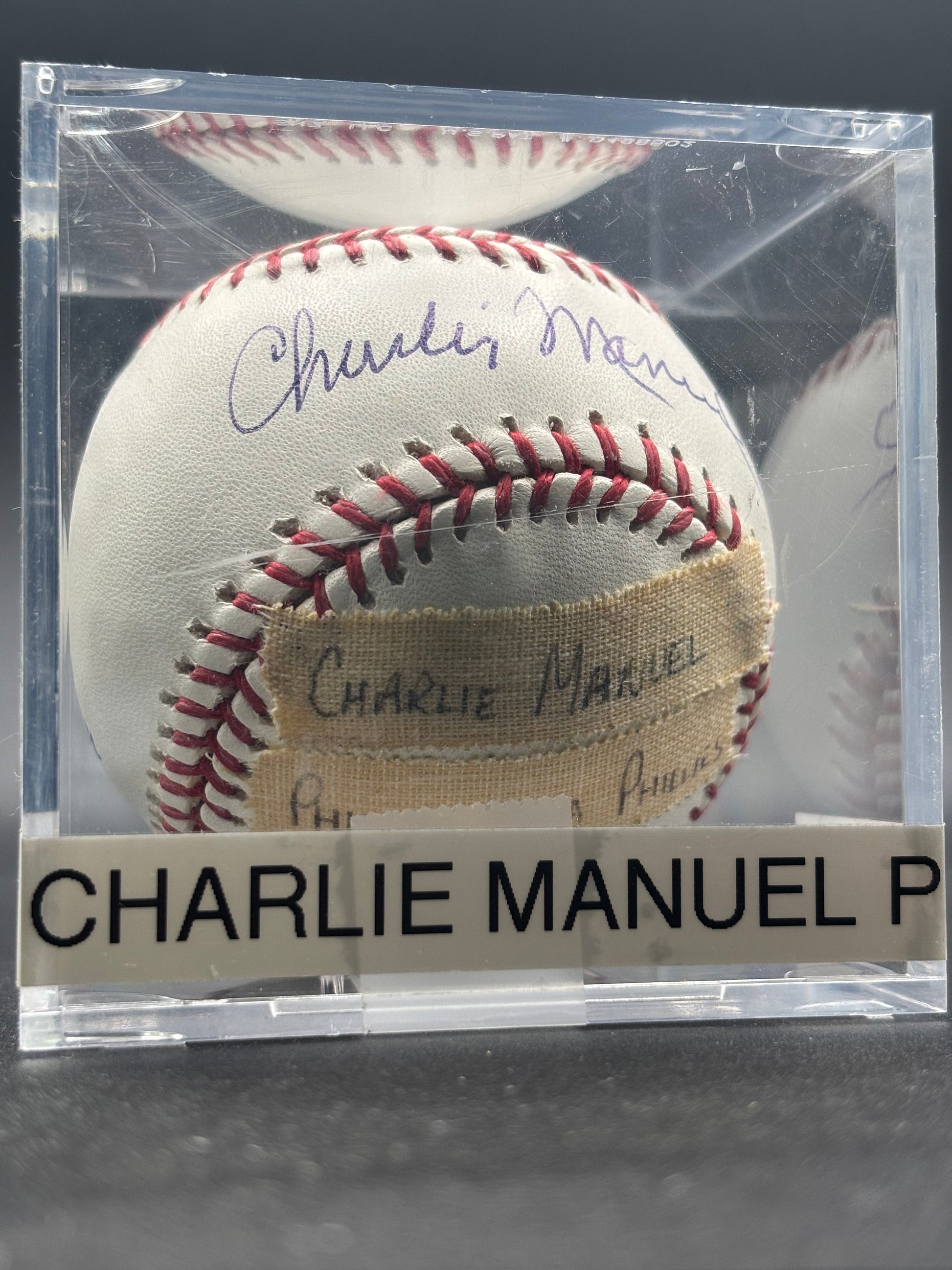 Charlie Manuel's autograph baseball is a prized collectible honoring a legendary figure in baseball. Throughout his career, Manuel distinguished himself as a player and later as a manager, earning recognition for his leadership and strategic acumen. He managed the Philadelphia Phillies to a World Series championship in 2008 and was a two-time National League Manager of the Year. This baseball, signed by Manuel, captures the essence of a career marked by dedication to excellence and significant contributions to the sport. It's an essential piece for any serious collector seeking a connection to baseball history.