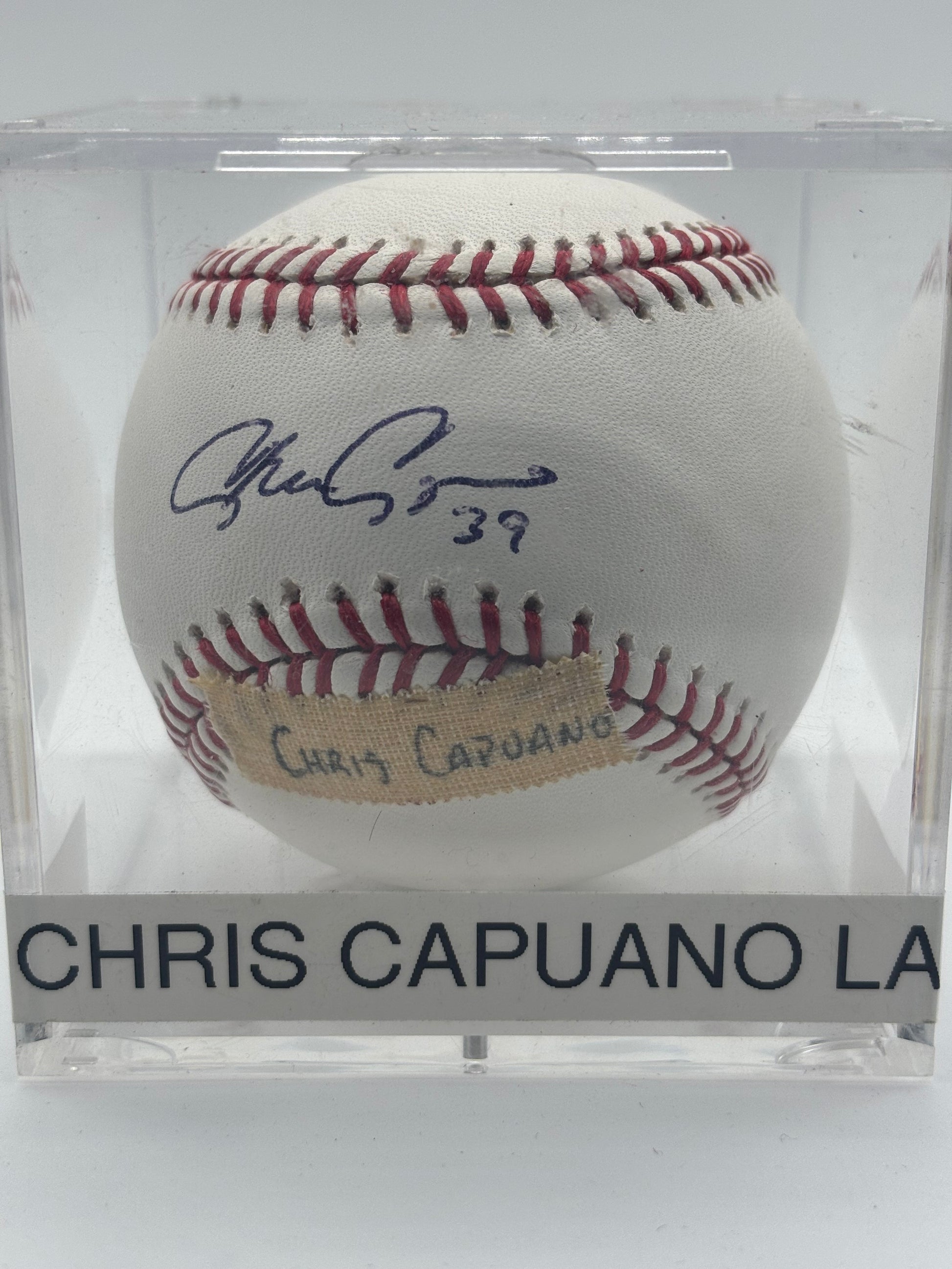 Celebrate the career of Chris Capuano with this authentic autograph baseball. Capuano, a left-handed pitcher, enjoyed a solid Major League Baseball career spanning over a decade, known for his control and resilience. He recorded over 700 innings pitched, with a career ERA around 4.50, and contributed to multiple teams including the Milwaukee Brewers and New York Mets. This signed baseball is a prized collectible for fans appreciating Capuano’s steady presence on the mound and his journey through professional baseball. Perfect for collectors seeking a piece of MLB history with genuine player memorabilia.