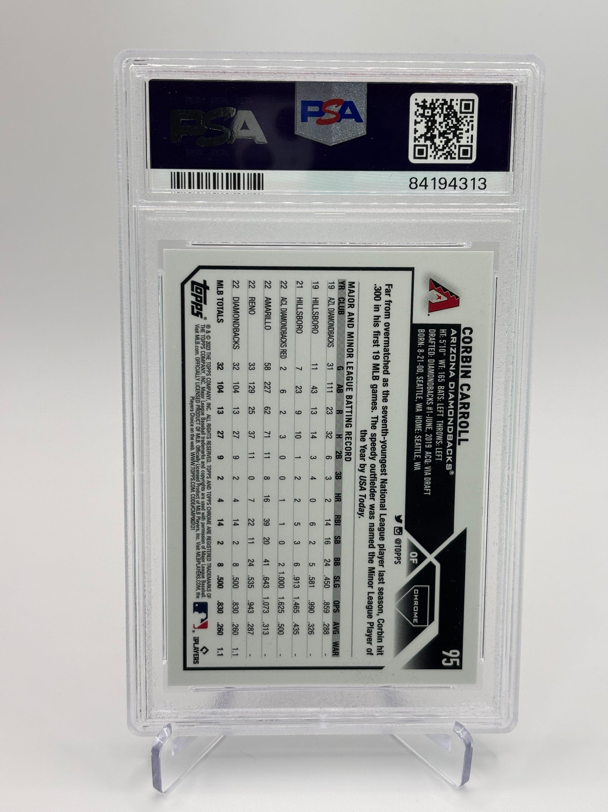 Corbin Carroll 2023 Topps Chrome Magenta Speckle RC 56/350 PSA 10