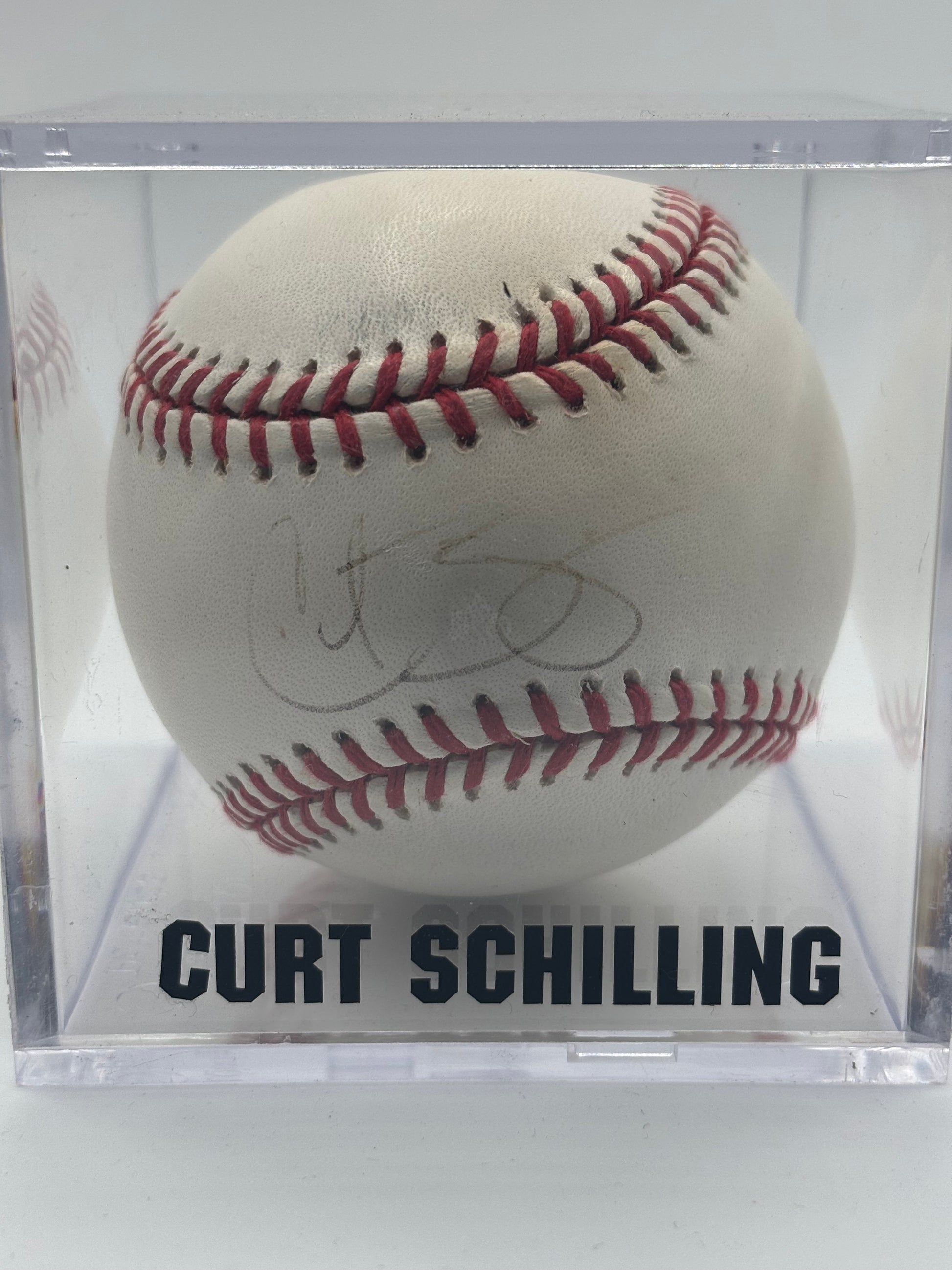 Celebrate the legacy of Curt Schilling with this autographed baseball, a prized collectible for any serious sports enthusiast. Schilling's illustrious career includes six All-Star selections, three World Series championships, and a remarkable postseason record highlighted by his pivotal role in the 2001 and 2004 playoffs. Known for his fierce competitiveness and clutch performances, this signed baseball captures the essence of one of baseball’s most dominant pitchers. A must-have for collectors seeking a piece of baseball history marked by excellence and resilience.