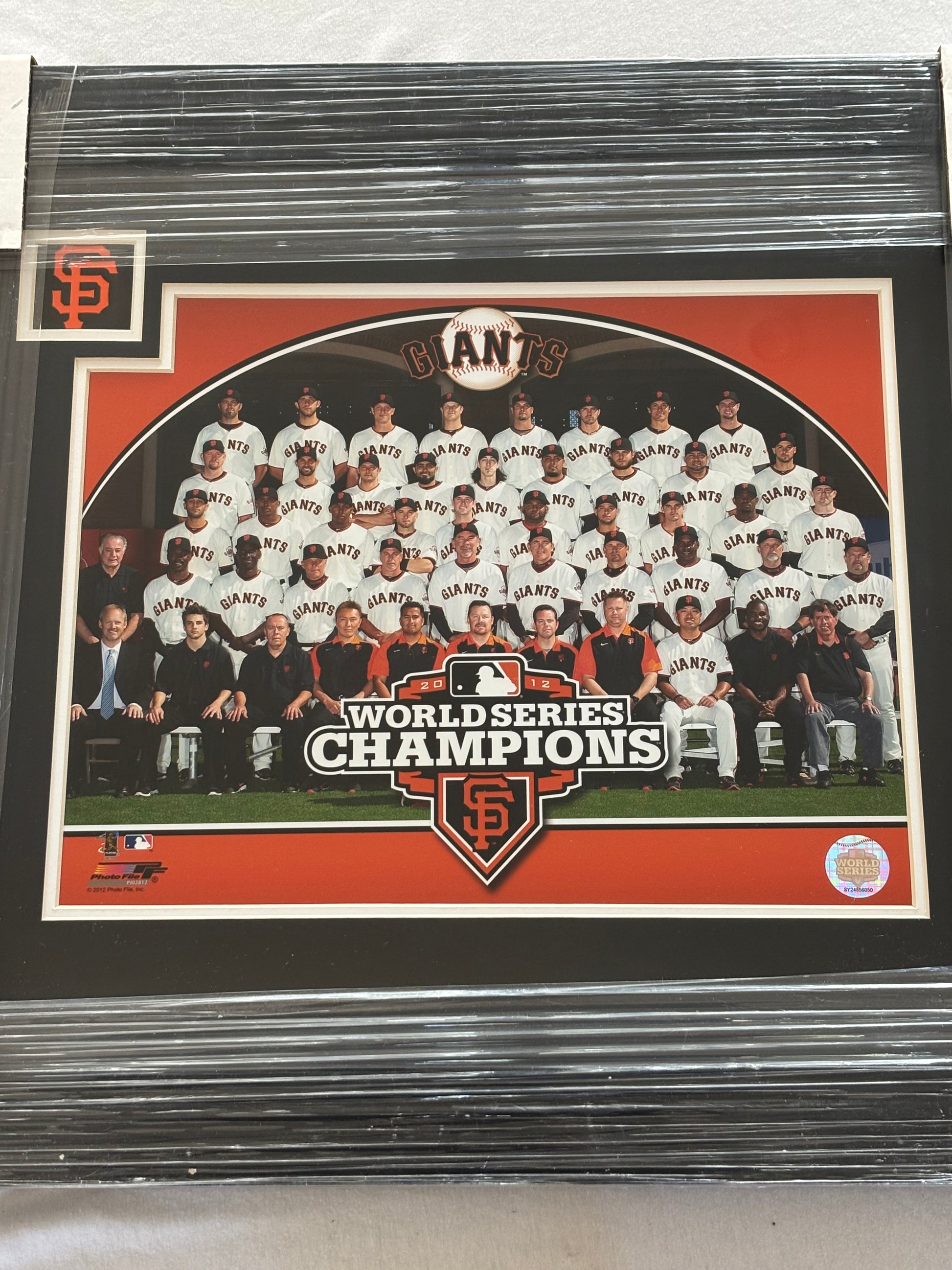 Celebrate the historic 2012 World Series victory with this expertly framed San Francisco Giants team portrait. Featuring every player from the active roster, injured members, key staff, the general manager, and the manager, this high-quality PhotoFile print captures the full championship team. As a licensed product, it offers both authenticity and exceptional detail, making it a prized collectible for any Giants enthusiast or sports memorabilia collector. Perfect for display, it honors a defining moment in baseball history with professional presentation.
