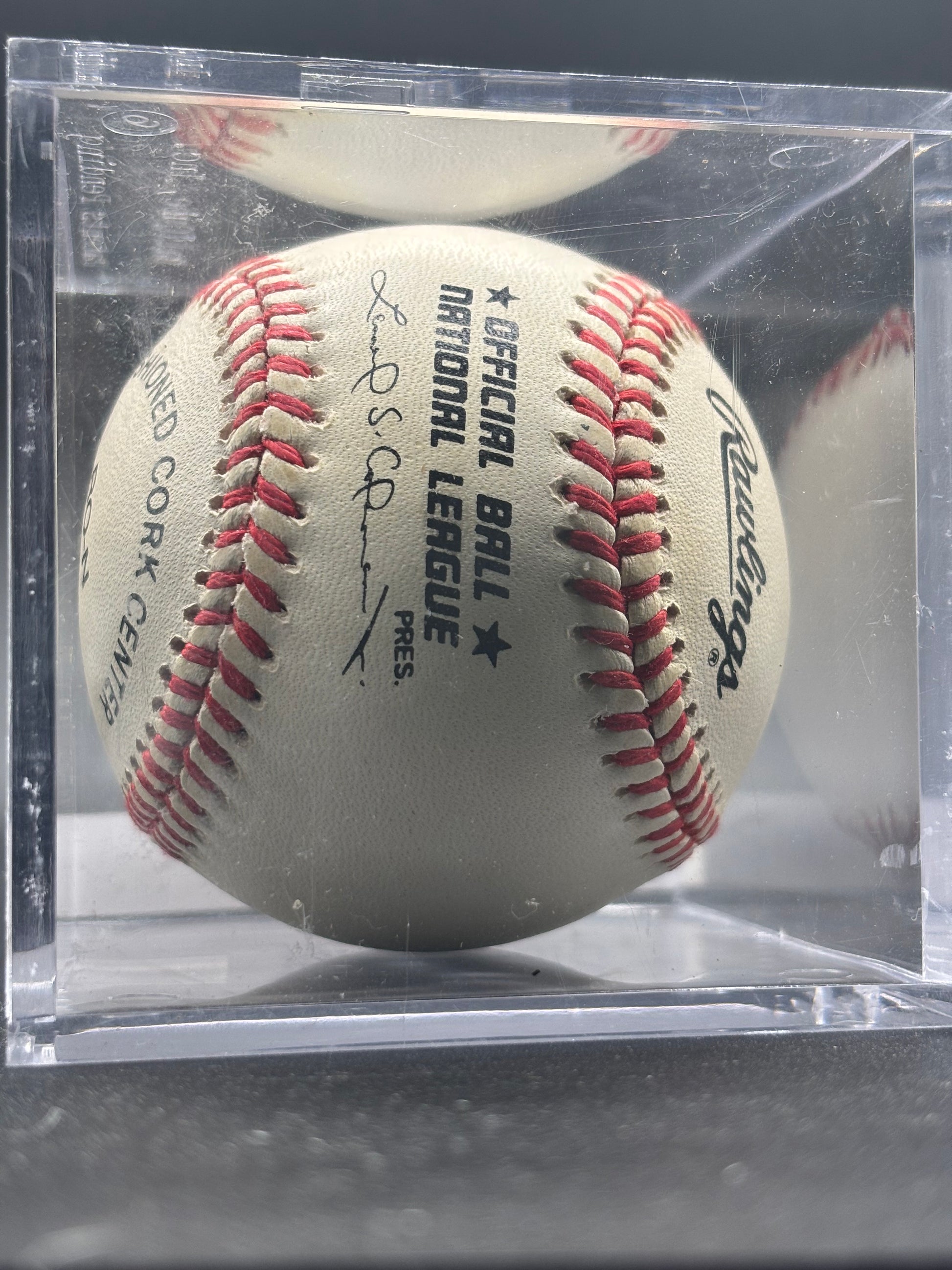 This Stan Javier Autograph Baseball is a prized collectible for serious sports memorabilia enthusiasts. Featuring the authentic signature of Stan Javier, a versatile and accomplished Major League Baseball player, this baseball offers a tangible connection to his impactful career. Ideal for display or investment, it combines historical significance with the appeal of a genuine autograph, making it a valuable addition to any collection.