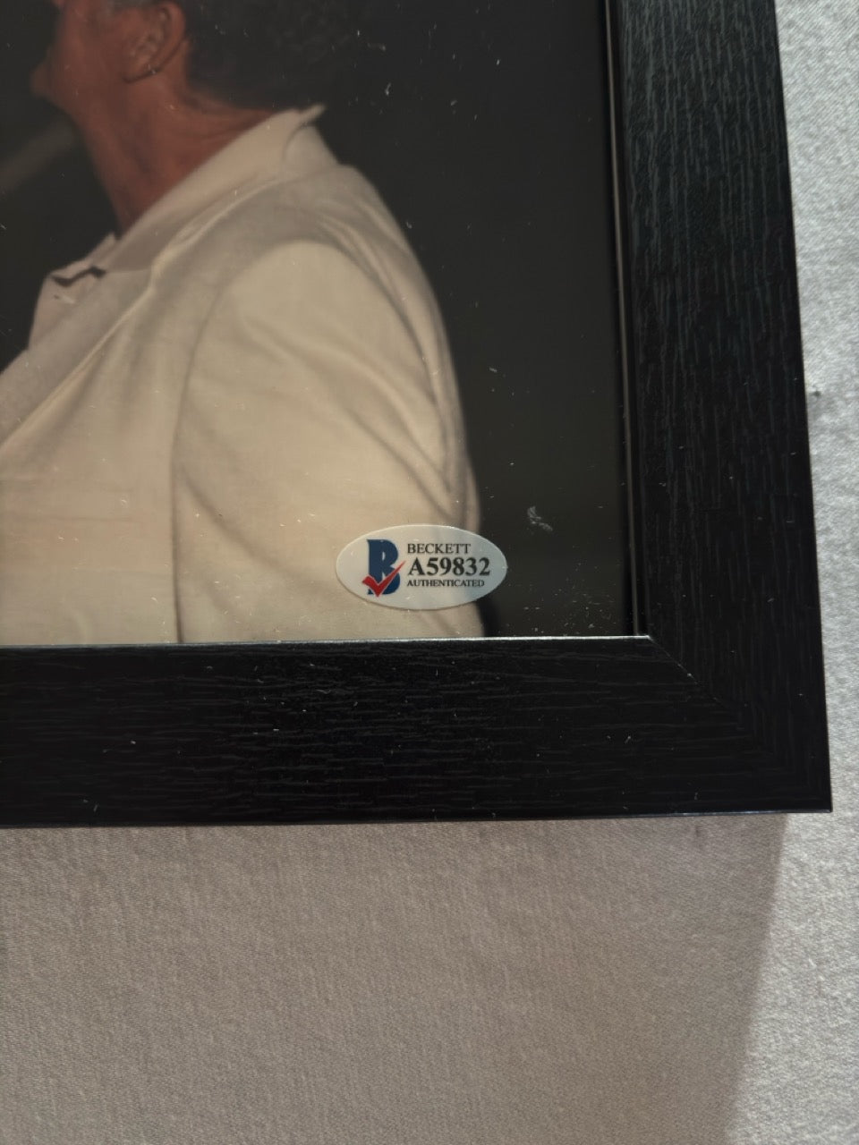 Celebrate the legacy of one of baseball’s greatest hitters with this autographed photo of Ted Williams. Known as "The Splendid Splinter," Williams was a two-time MVP and a 19-time All-Star whose career batting average of .344 remains legendary. This signed photo is authenticated by Beckett with a Letter of Authenticity (LOA), ensuring its value and authenticity for collectors and fans alike. A prized addition for any sports memorabilia collection, it honors Williams’ remarkable impact on the game.