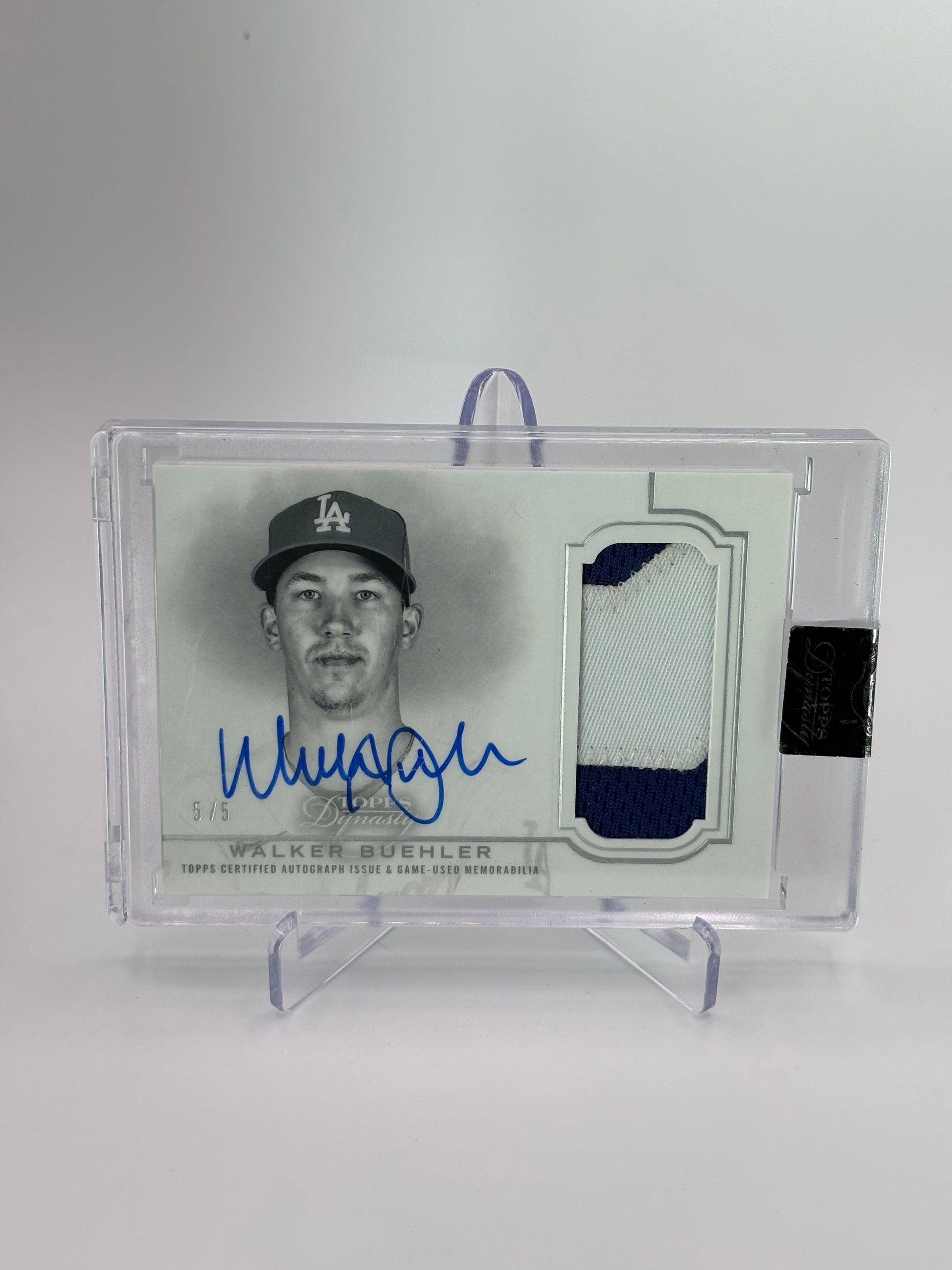 This Walker Buehler 2020 Topps Dynasty Dynastic Deed Dual Color Patch Auto #5/5 is a rare collector’s gem, featuring a dual-color patch and an autograph, limited to just five copies. It highlights Buehler’s elite status with premium craftsmanship and scarcity, making it a prized addition for serious baseball card enthusiasts and investors alike.